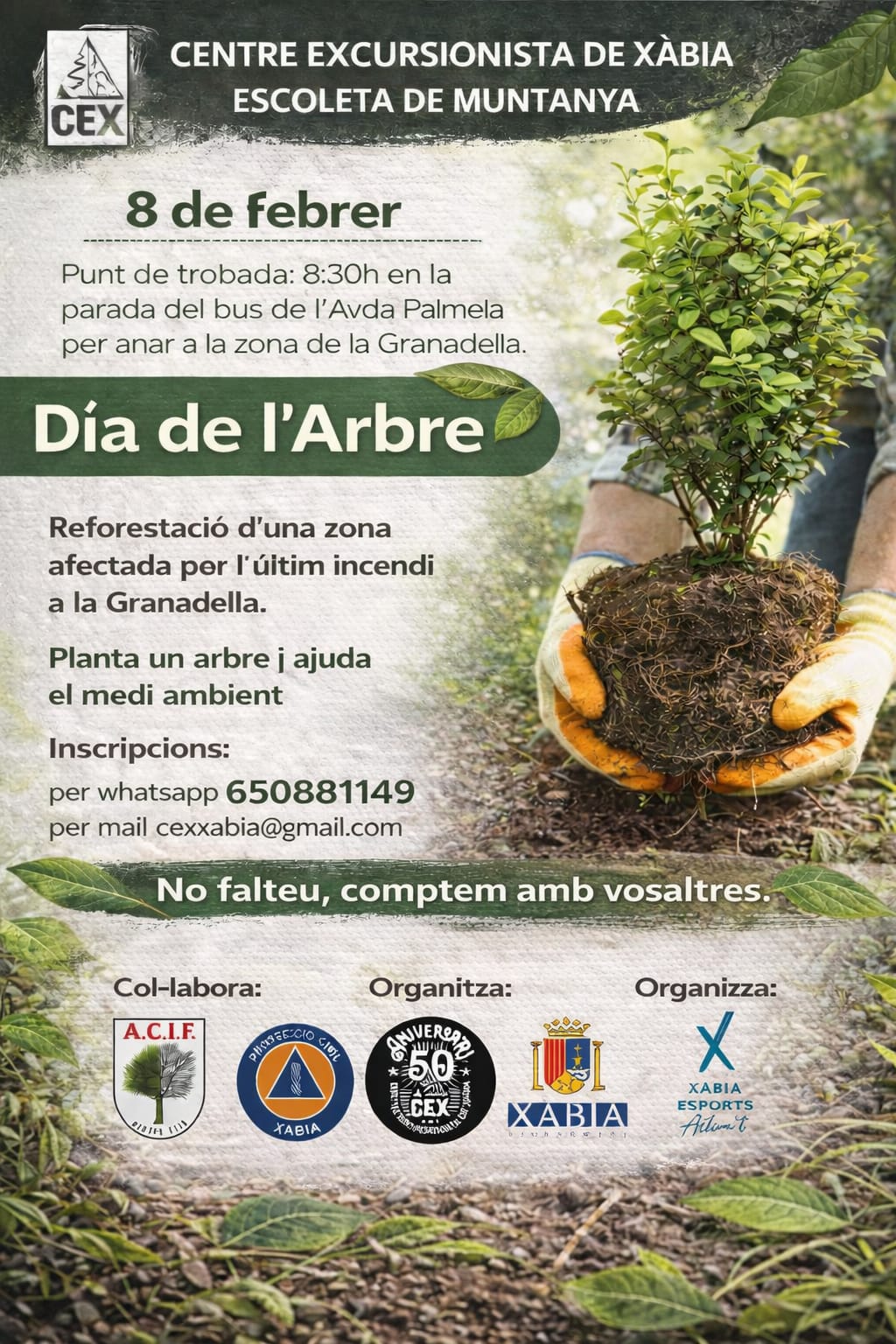 Reforestació per l'últim incendi a la Granadella. Planta un arbre i ajuda al medi ambient. Inscripcions Whatsapp: 650 88 11 49 Mail: cexxabia@gmail.com